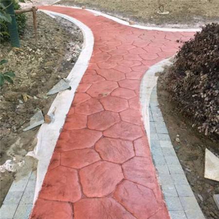 4.彩色脫模粉處理:施工的表面均勻拋撒彩色脫模粉,將整個表面覆蓋,同時在模具的表面也上一些脫模粉;
